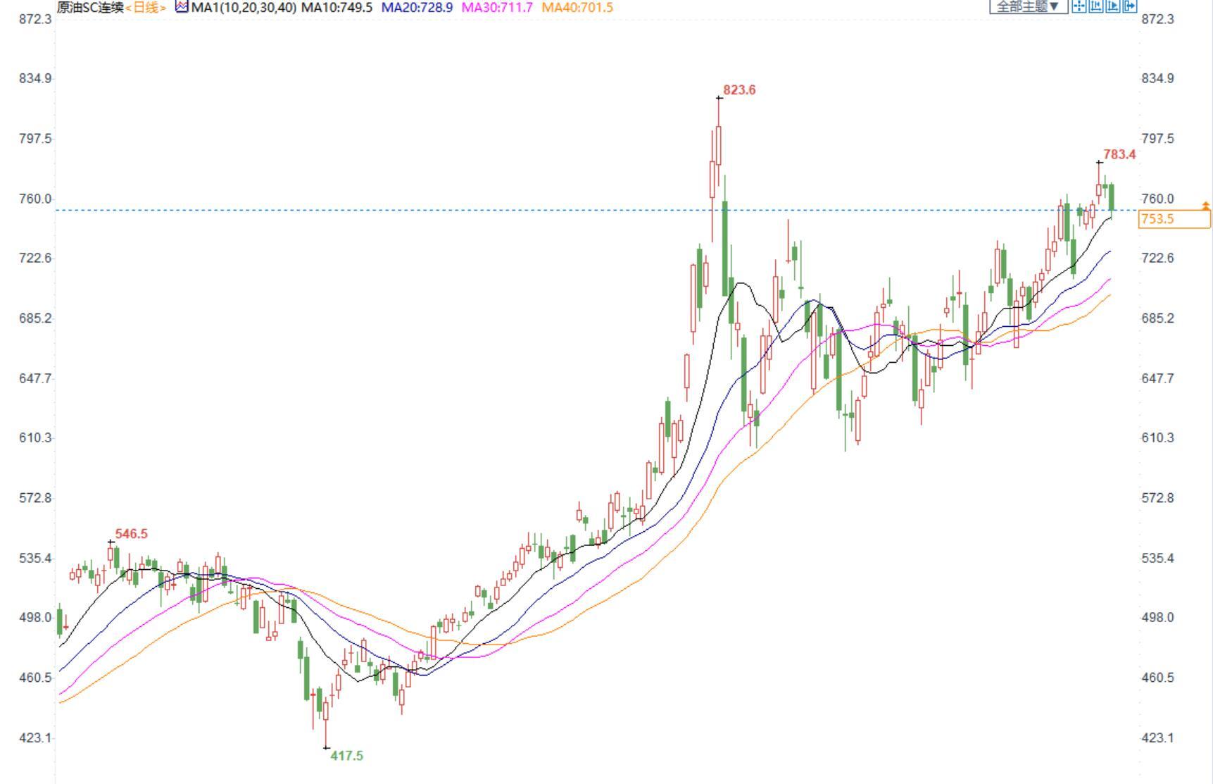 (INE原油日线图)