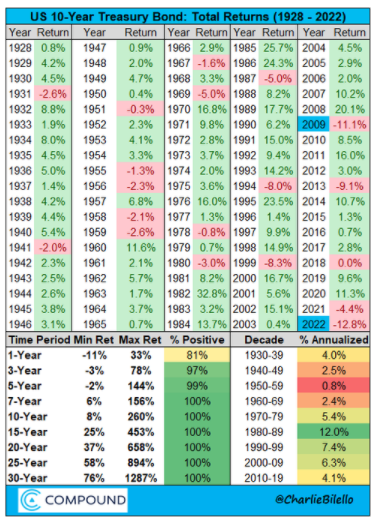 自从年初以来,10年期美国国债的回报已累计重挫了12.8%,很可能创下近百年历史上最糟糕的年景。