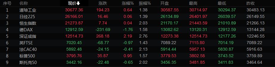 全球主要市场行情一览