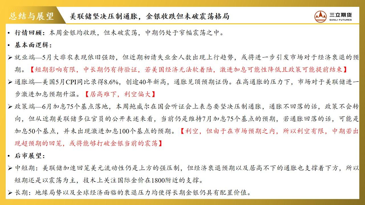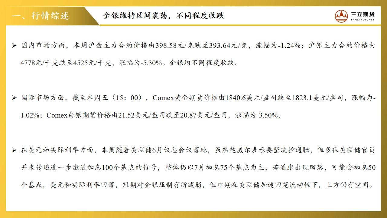 三立期货贵金属周报(20220624)