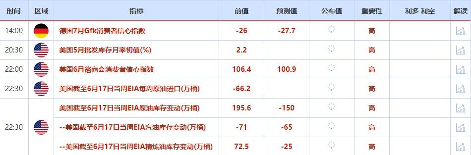 至于欧元走势,Bannockburn Global Forex LLC的首席市场策略师Marc Chandler表示,投资者需关注7月1日公布的欧元区消费者物价。