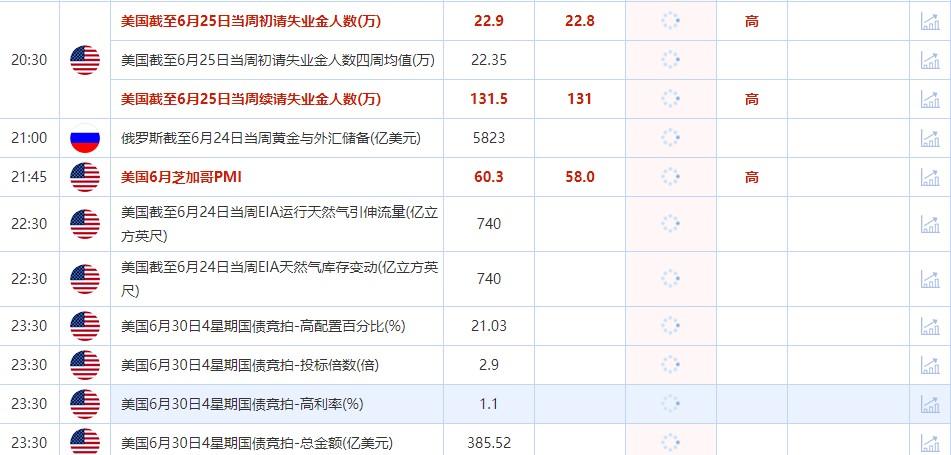 后续及时更新的财历数据请关注:【汇通网6月30日财经日历】