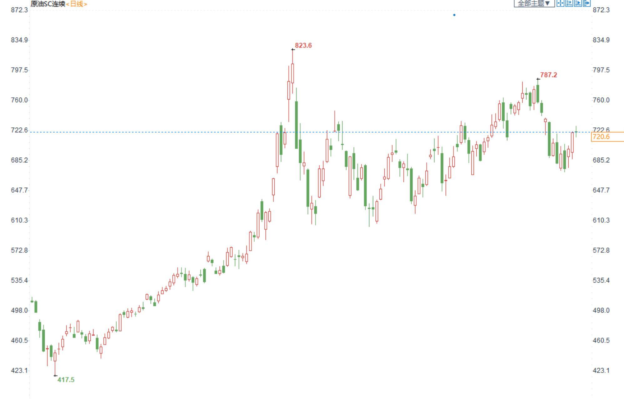 周三(6月29日)上海原油价格收盘上涨14.6元,涨幅2.07%。主力合约2209终盘收于720.6元/桶,涨14.6元/桶。油价收涨,主要因市场对OPEC能否增产存疑,且利比亚形势严峻,或暂停原油出口。