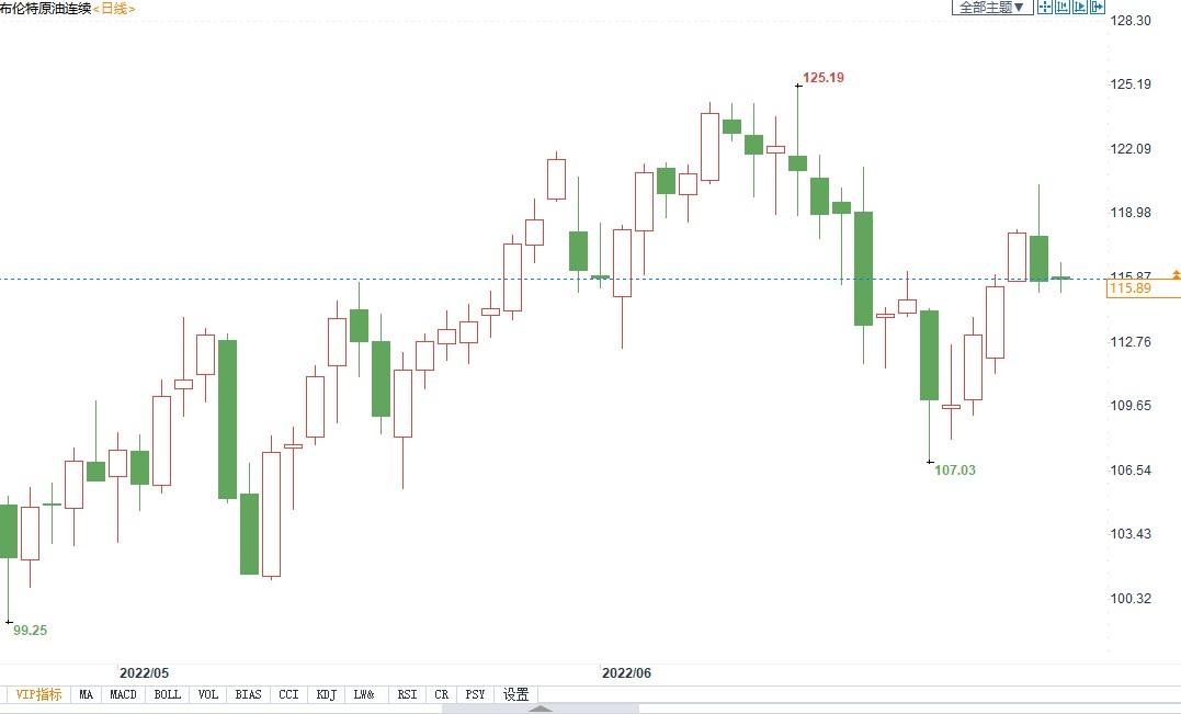 北京时间6月30日13:18,布伦特原油主力合约价格报115.89美元/桶。