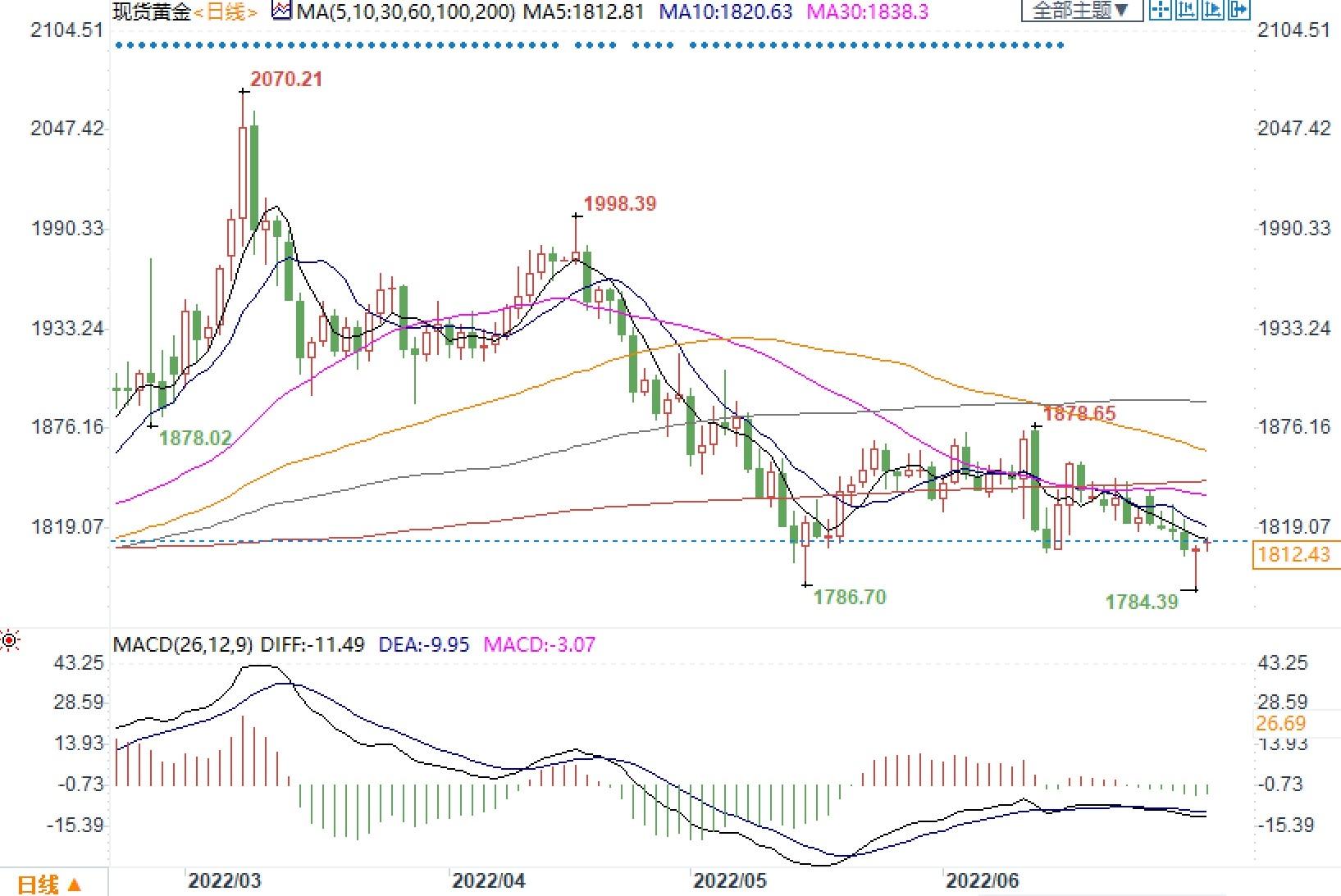 随着市场人气继续小幅看空,金价可能跌破每盎司1800美元。不过,市场分析师预计黄金不会出现任何趋势性行情,虽然面对全球利率上升,黄金仍将坚守阵地。