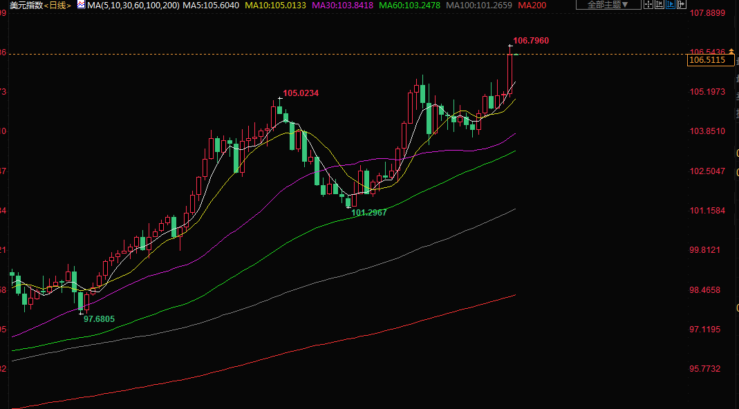 盘中稍早,美元指数一度上涨1.6%,欧元急挫1.75%,触及2002年底以来最低。欧元创2020年3月新冠疫情重创市场以来的最大单日跌幅,美元创下自那以来的最大单日涨幅。