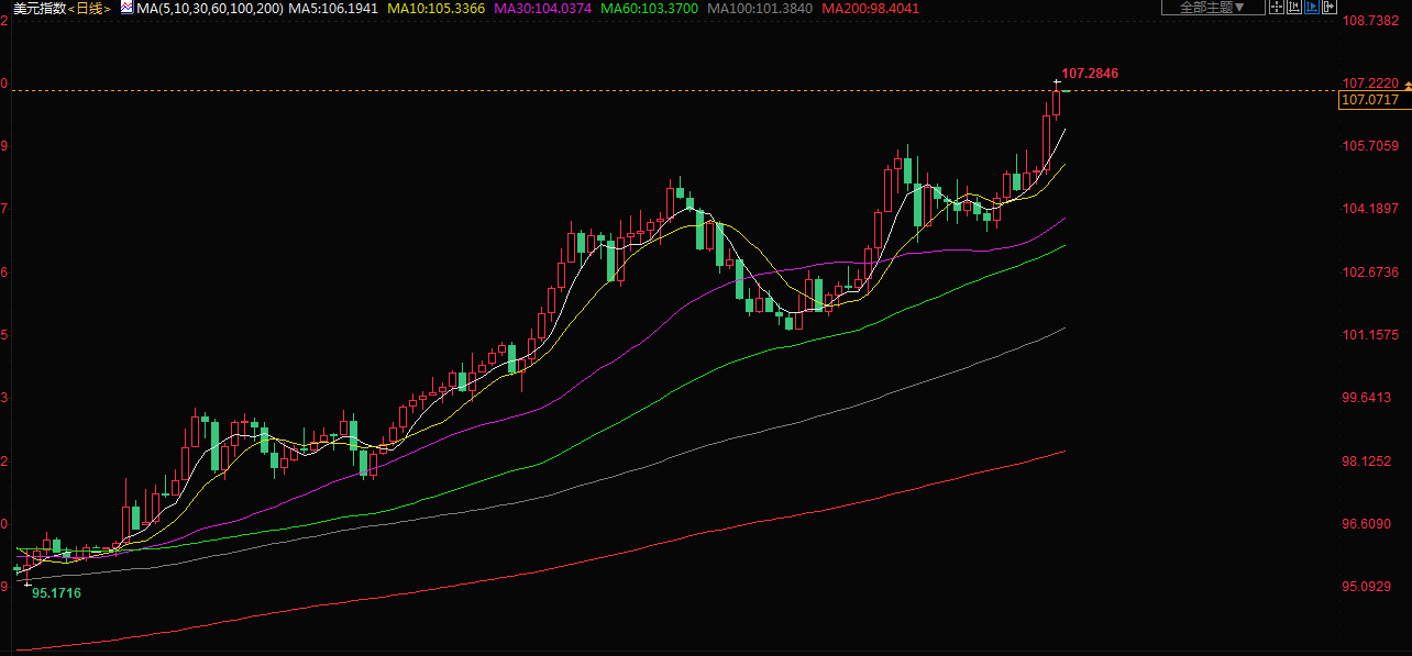 金价周三下跌1.8%,跌至逾9个月低点,因美元跃升至2020年3月以来最高,在衰退担忧日盛而美联储继续加息之际,投资者把美元当成避险资产。全球央行都在收紧货币政策以应对通胀之际,投资者担心经济低迷即将到来。美联储加息速度会超过欧洲央行等同行的可能性也进一步提振美元上涨。金价迈向2021年6月以来最大单周跌幅。
