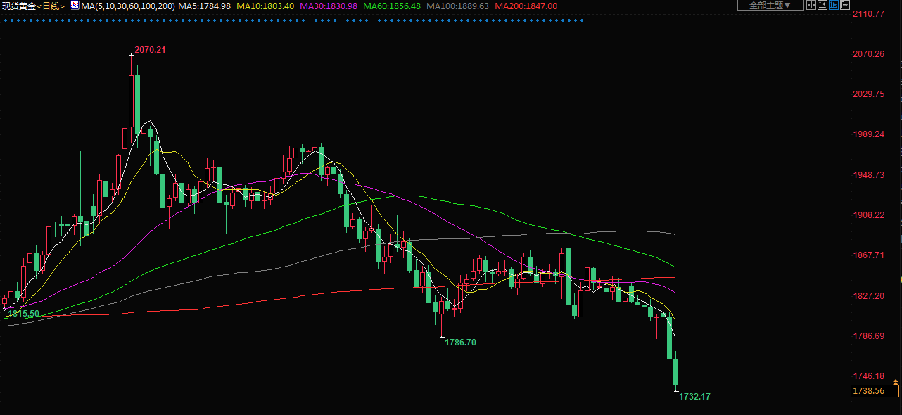 Blue Line Futures首席市场策略师Phil Streible表示,“这让人非常不安,不仅是黄金,还有白银、铂金、钯金,美元在上涨,鲍威尔将压低通胀,而这会以牺牲股市、大宗商品和其他一切为代价。如果你大幅加息,那么人们更愿意持有有息资产,而不是像黄金这样的无息资产。”
