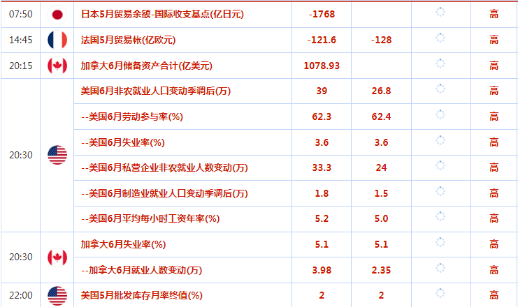 周四公布的报告显示,上周美国初请失业金人数量意外增加,越来越多的迹象表明对劳动力的需求正在降温,6月裁员人数激增至16个月最多。周五将发布的受到密切关注的就业报告预计将显示,6月非农就业岗位可能增加26.8万个,5月为增加39万个。