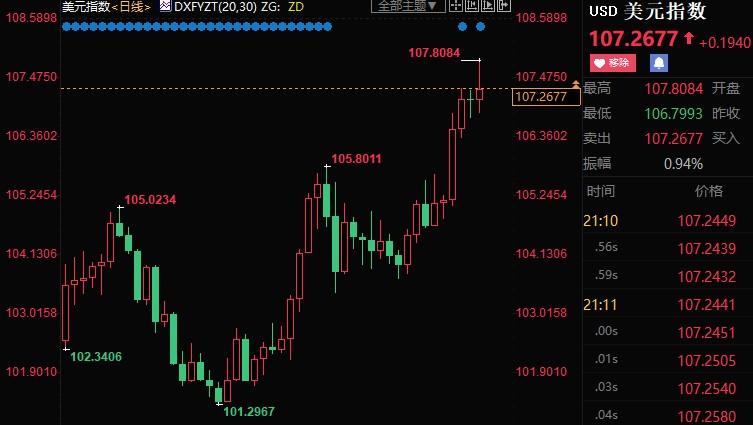 美国非农数据大幅好于预期,强化美联储7月继续加息75个基点的决心。此外,对全球经济衰退担忧的加剧,也提振了美元避险特征,美元指数本周大涨逾2%,创2002年10月末以来新高至107.808。