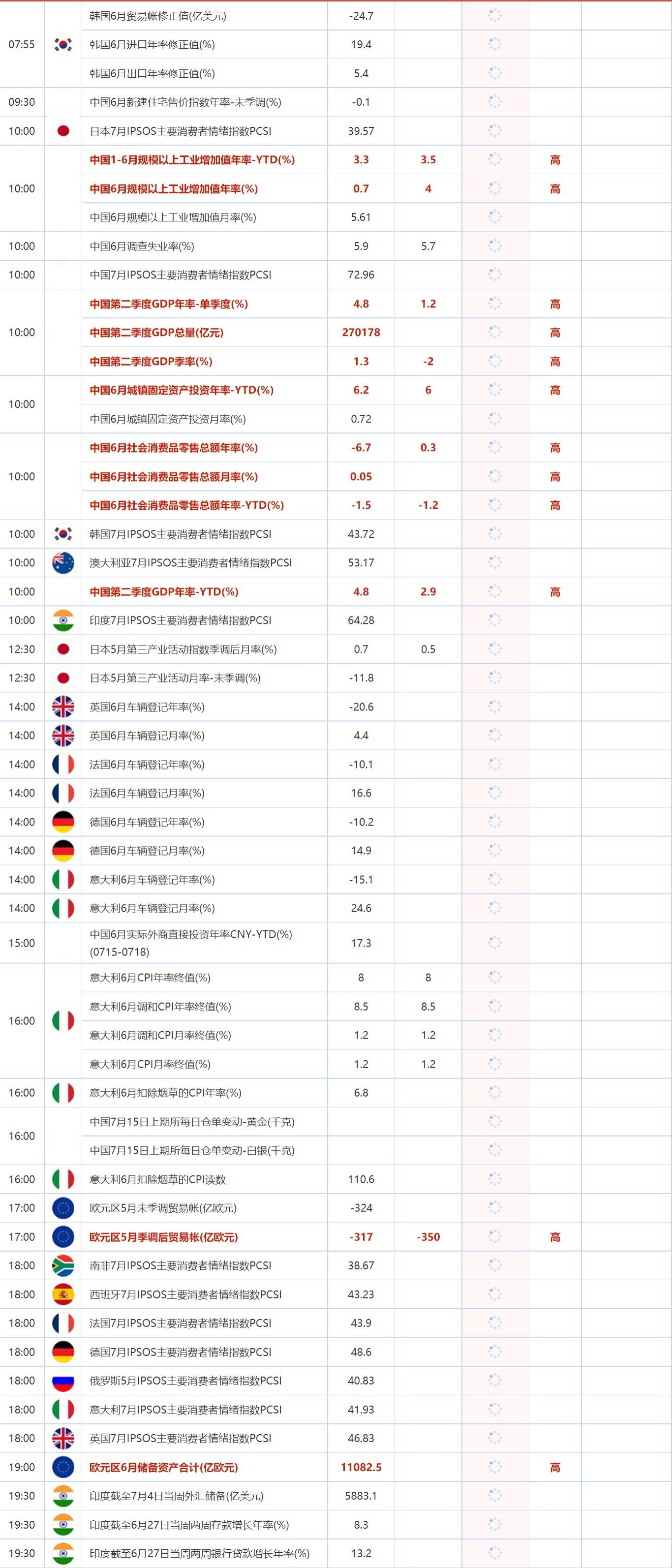7月15日财经数据和大事件前瞻