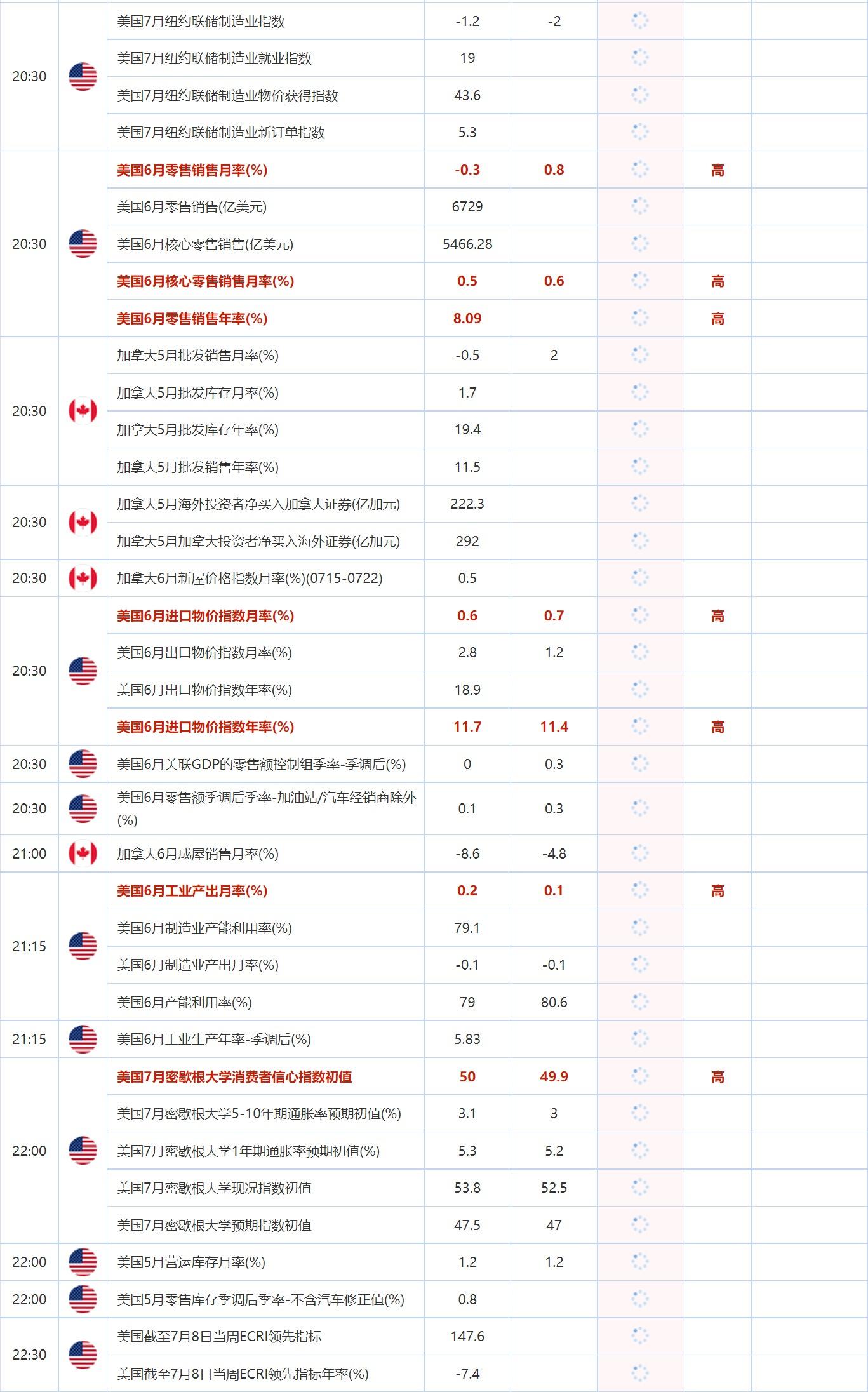 后续及时更新的财历数据请关注:【汇通网7月15日财经日历】