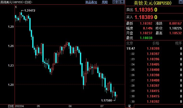 英镑兑美元本周三连跌,盘中创2020年3月下旬以来新低至1.1759。除了美元大涨带来的利空,交易员还担心英国经济的前景,担心英国经济增长停滞不前,且通胀率最终可能持续高于其他地区。