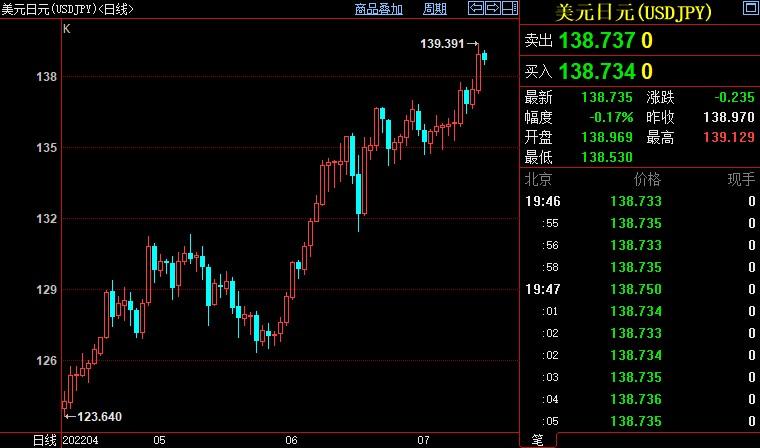 日元开启新的贬值征程。美元兑日元创1998年9月初以来新高至139.383。日元近期大幅下跌让日本政府感到担忧,官员表示将在与日本央行密切合作的同时更加紧迫地监控货币市场。