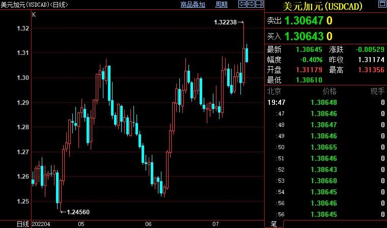 美元兑加元本周创2020年11月上旬以来新高至1.3222,但加拿大央行深化鹰派姿态,限制了加元跌势,汇价目前运行在1.31关口下方。