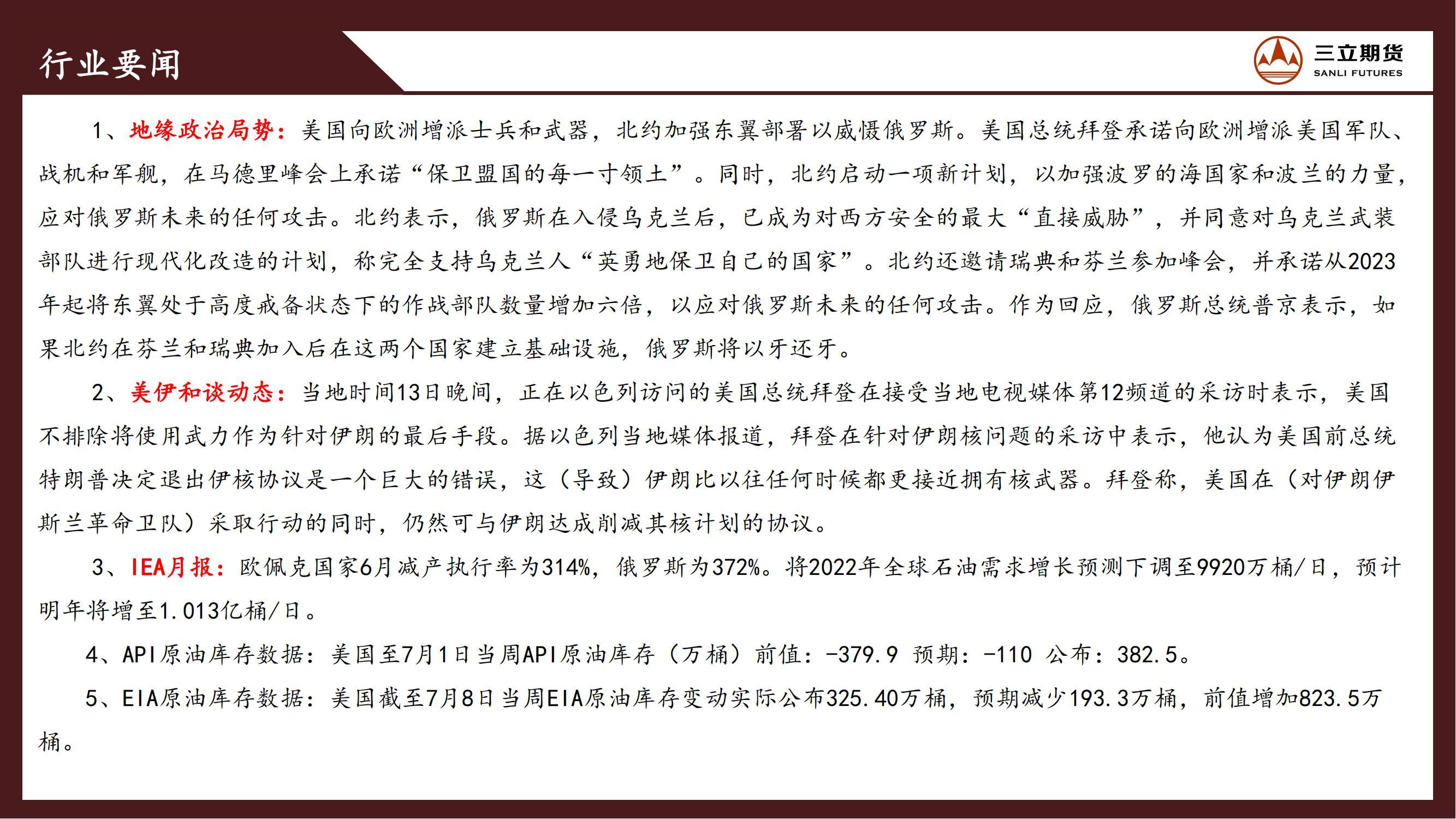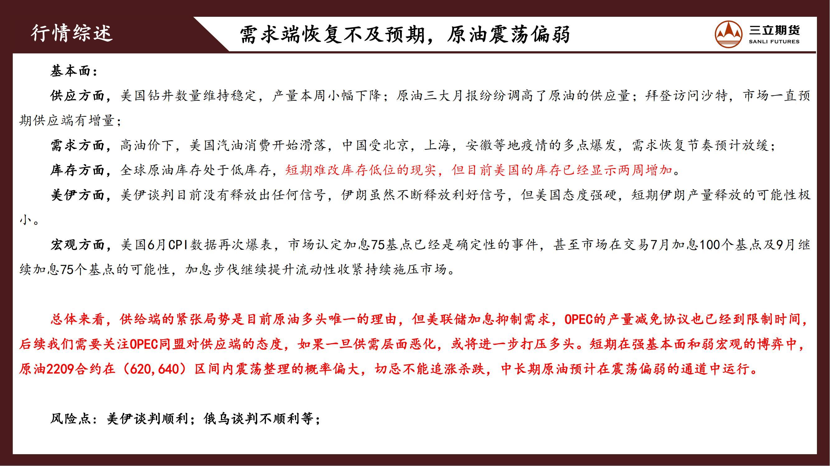 三立期货原油周报20220715
