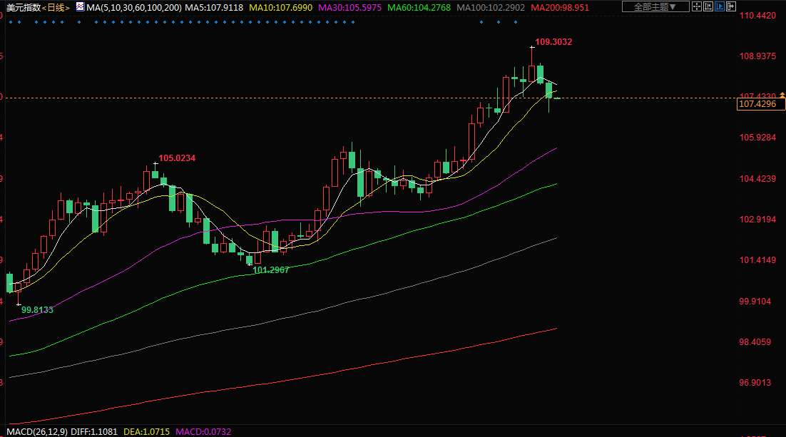 周二(7月19日)亚市盘初,美元交投于107.43附近,周一美元触及一周最低,市场降低了美联储激进加息的预期,现在坚定的押注加息75基点;金价受到提振有所回升;油价尾盘大涨4.5%,受益于美元走软和供应紧张支撑。