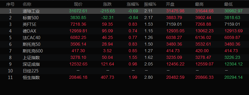 全球市场行情一览