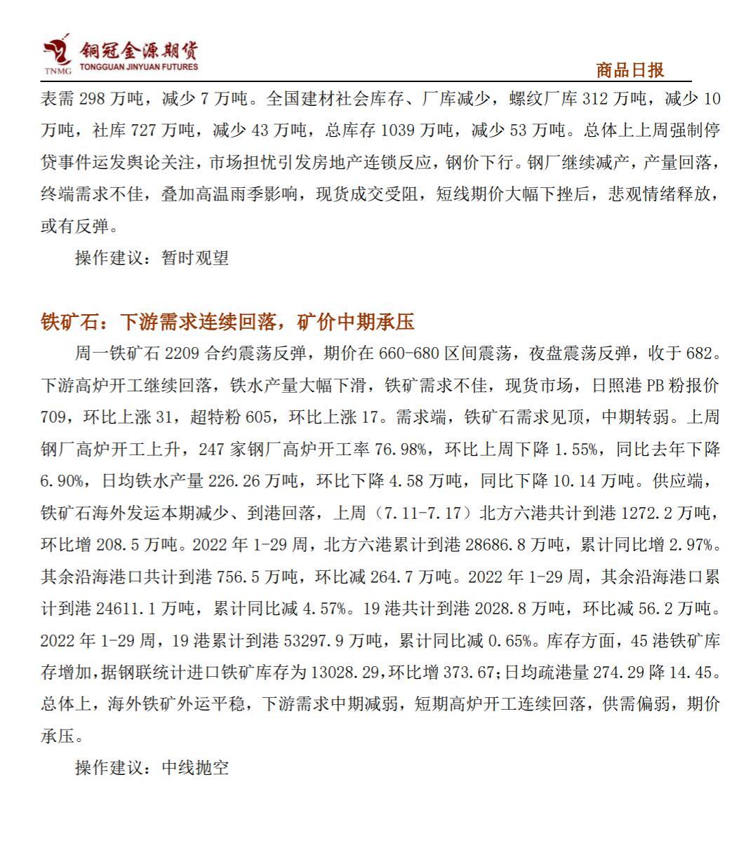 铜冠金源期货商品日报20220719