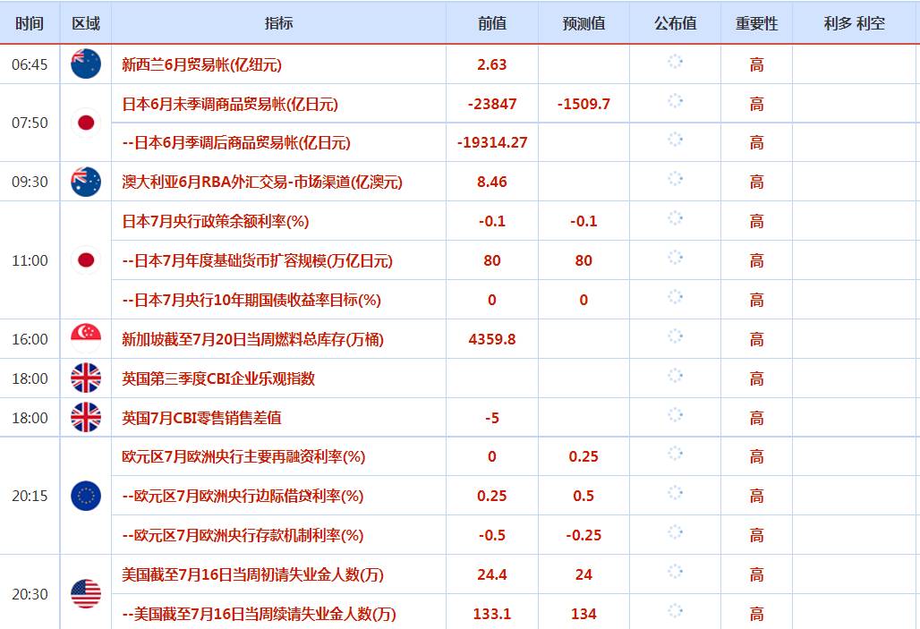 7月21日财经早餐:金价反弹失败重回1700下方,聚焦两大央行利率决议