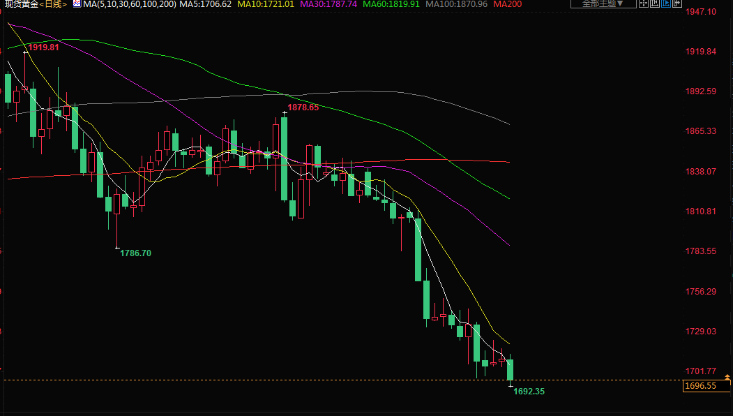 金价周三下跌,美元走强,盖过了美联储下周可能不会加息100个基点的预期带来的支撑。道明证券商品策略师Daniel Ghali表示:“金价陷于窄幅区间,但交易量很大。美联储官员已经淡化了加息100个基点的观点,但金价仍然没有成功反弹,因为仍有交易员在趁价格还没有进一步下跌前卖出。”
