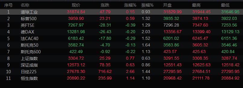 全球市场行情一览
