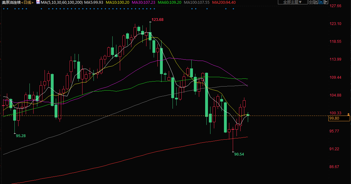 商品收盘方面,9月布伦特原油期货下跌0.43美元,报收每桶106.92美元。8月美国原油期货下跌1.96美元,报收每桶102.26美元。交投更为活跃的9月美国原油合约收报每桶99.88美元,下跌0.86美元;美国期金结算价下跌0.6%,报1700.20美元。