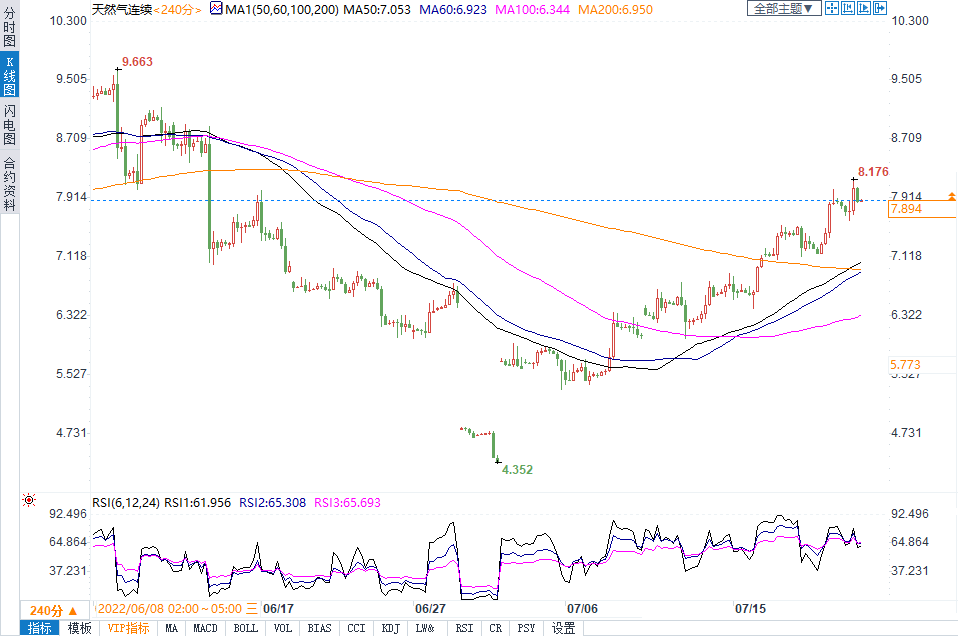 (美天然气四小时图)