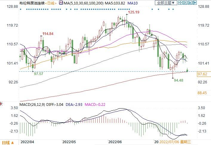 北京时间7月25日14:14 布伦特原油连续 报 97.62美元/桶