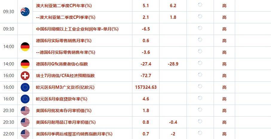 周三需要关注的大事件:欧洲央行管委埃尔南德斯德科斯就通胀和经济增长发表讲话。