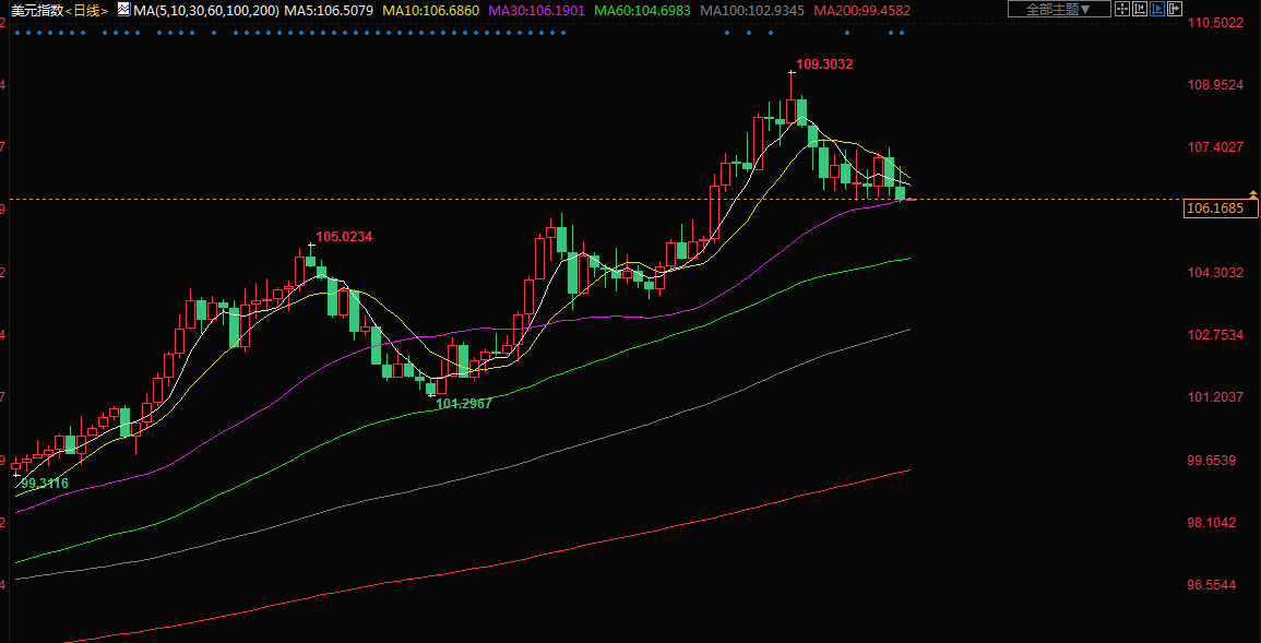 美元兑一篮子主要货币周四下滑0.1%,至106.25;美元兑日元周四跌至六周低点,追随美债收益率跌势,此前数据显示美国第二季度经济再次萎缩,助长了对美联储不会像之前预期的那样激进加息的猜测。