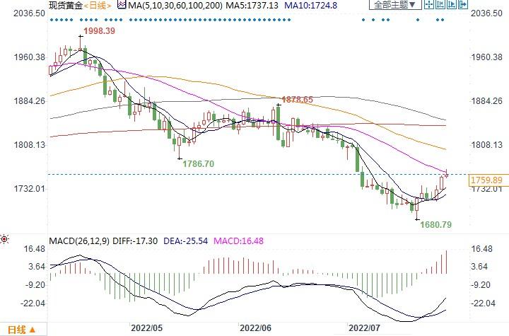 美联储加息75个基点符合预期,美国第二季度GDP继续萎缩,黄金大涨