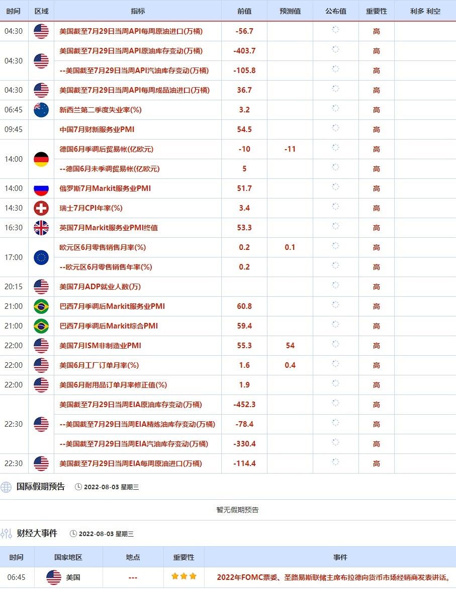 ②8月2日(周二)关键字:澳洲联储利率决议,芝加哥联储主席埃文斯