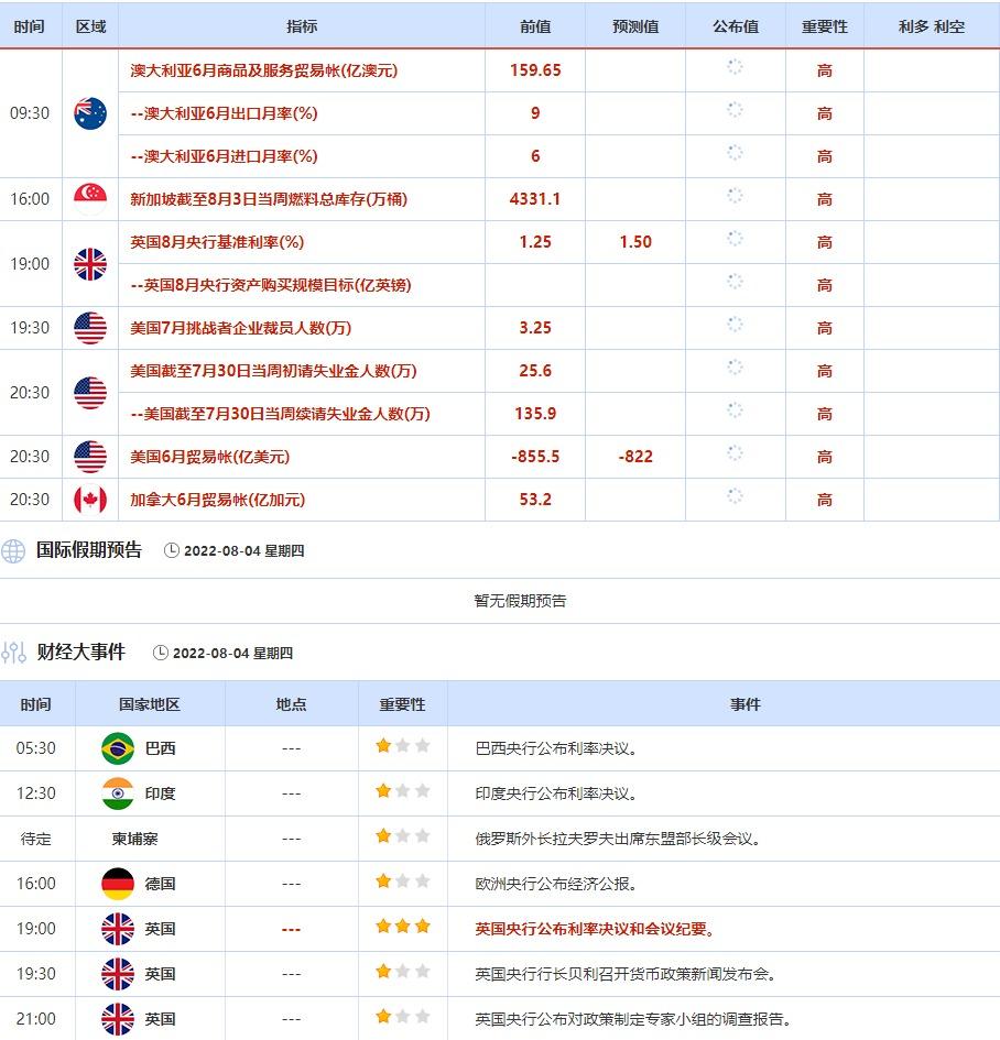 ④8月4日(周四)关键字:英国央行利率决议,美国截至7月30日当周初请失业金人数