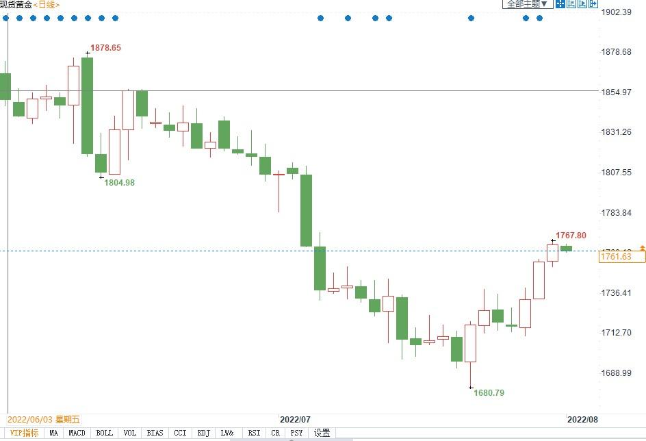 北京时间8月1日11:57,现货黄金报1761.72美元/盎司。