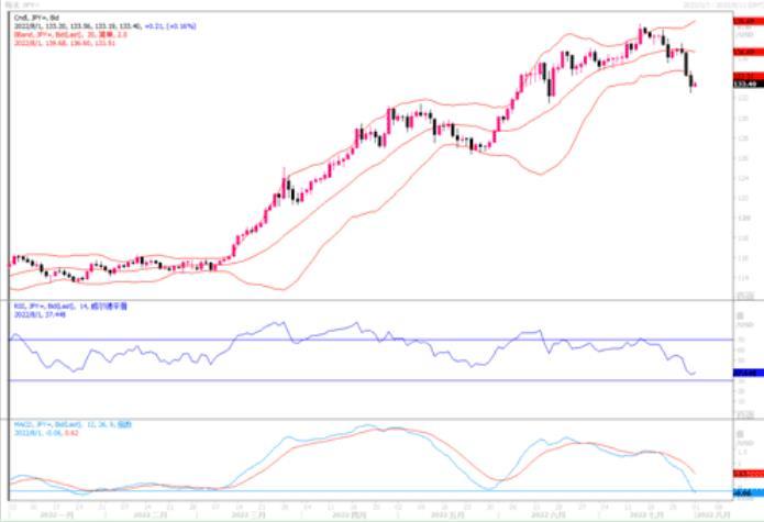 日元周五录得近三年来最佳单月表现,因对经济成长的担忧令美国公债收益率大幅下滑,并将投机客挤出日圆空头仓位。在周五的亚洲交易时段,买盘浪潮将日元推升约1%,延续周四涨势。7月份日元兑美元累计上涨2%,并触 及六周高点132.50。日圆经常跟随美国公债收益率的走势,尤其是10年期公债收益率。美债较日债收益率的巨大利差吸引日本投资者持有美国公债,也吸引其他投资者做空日元兑美元。但这一利差已在7月缩小了约30个基点,为2020年3月以来的最大变动。上周四数据显示美国经济上季度意外萎缩,周三美联储指出经济放缓可能会放慢升息脚步。为此,一些交易员正在减少押注日元走软的头寸,因为加息的风险在降低。现在日元空头回补的交易将会成为8月交易的主调。日线图上,美元兑日元已渐渐下行在各短期均线下方,技术指标继续向负向区域延伸的势头明显;布林带喇叭口又扩张趋向。美日若进一步回落,下方将考验130整数关口的支撑。