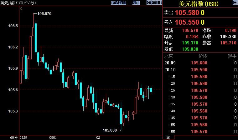 北京时间20:10,现货黄金上涨0.42%至1779.52美元/盎司;COMEX期金主力合约上涨0.50%至1796.7美元/盎司;美元指数上涨0.17%至105.564。