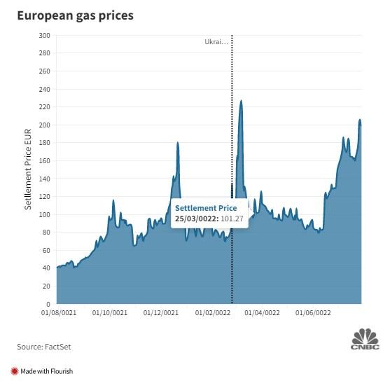 在俄罗斯入侵乌克兰之后,甚至在俄罗斯开始收紧天然气供应之前,天然气价格就已经大幅上涨。每当俄罗斯减少对欧洲的供应时,就会出现新的价格压力,因为这种大宗商品对多个行业非常重要,而且缺乏俄罗斯化石燃料的替代品。