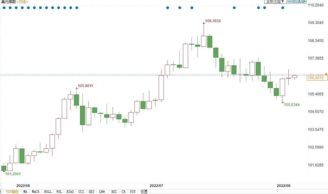 北京时间8月4日14:18,美元指数报106.50。
