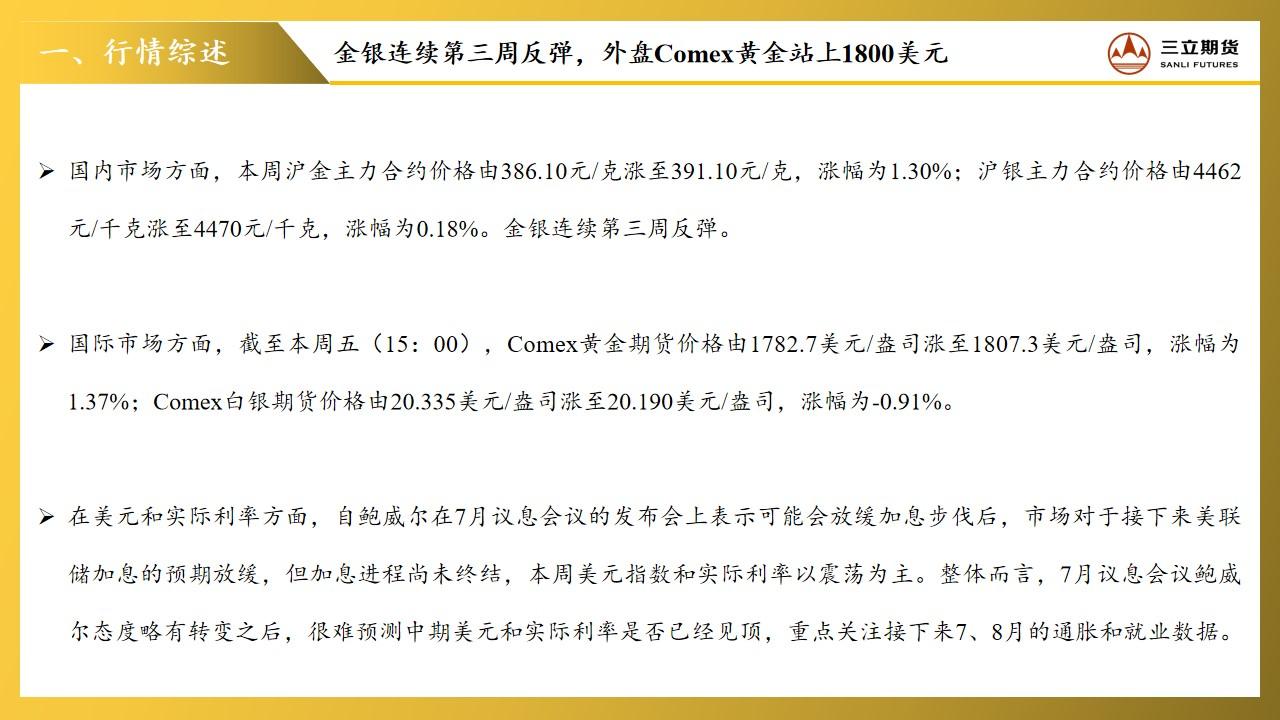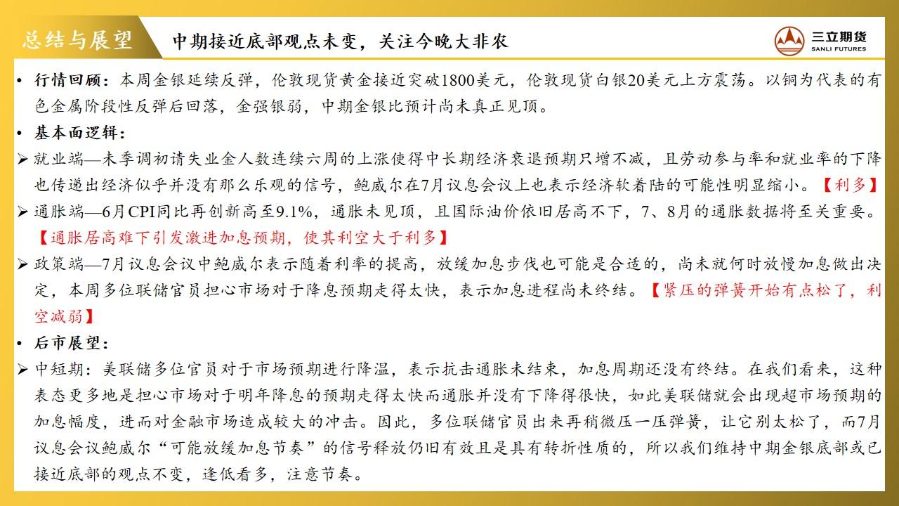 三立期货贵金属周报20220805:中期接近底部观点未变,关注今晚大非农 2022-08-05 19:47 三立期货公司授权文本由“专注期货开户交易及专业行情分析资讯网站”:【一期货 www.1qh.cn】转发