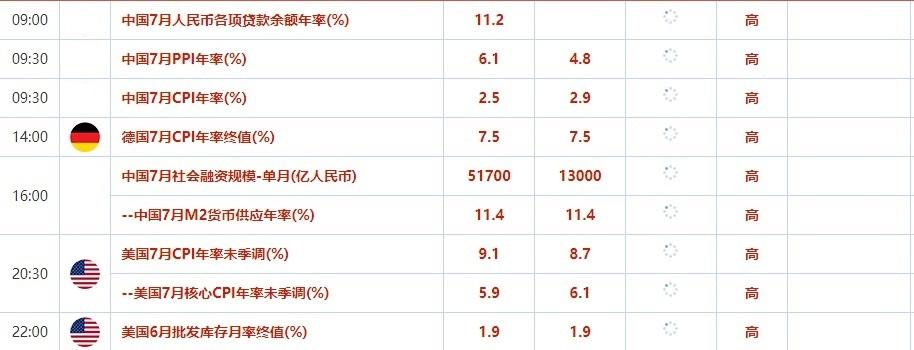 投资者需要关注的大事件:周三(8月10日)23:00,芝加哥联储主席埃文斯就美国经济和货币政策进行讨论;周四(8月11日)02:00,明尼阿波利斯联储主席卡什卡利就通胀进行讨论。