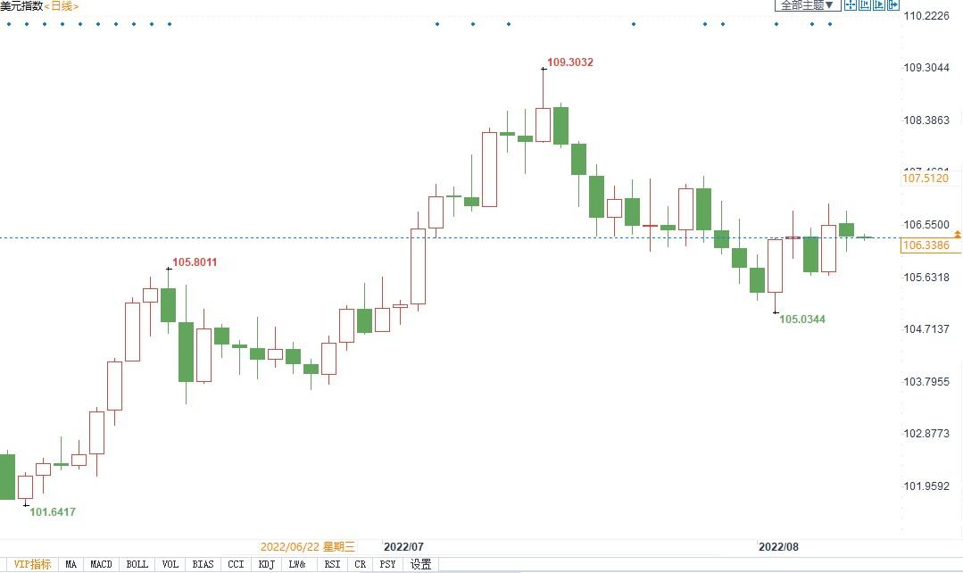 北京时间8月8日14:26,美元指数报106.35/36。
