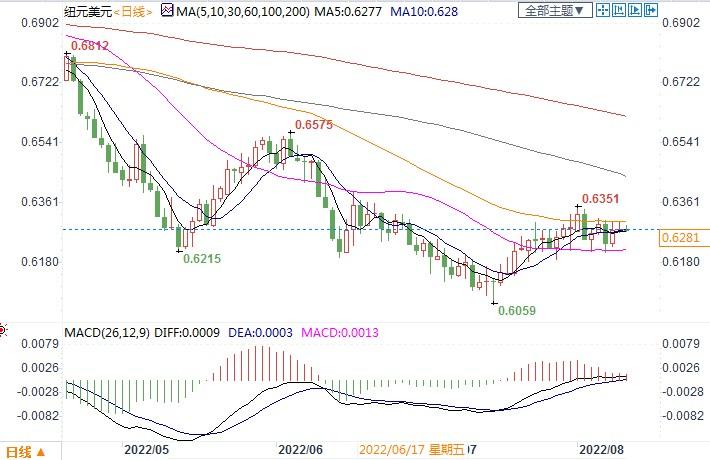 北京时间8月10日14:36 纽元兑美元报0.6281/62。