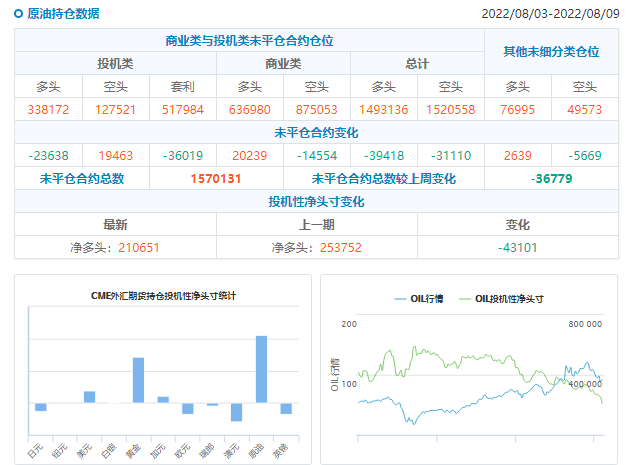 CFTC商品持仓解读:黄金投机性净多头创最近七周新高,原油净多头降至逾二年新低(截至8月9日当周)