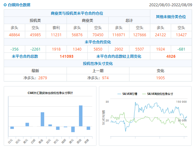 美国商品期货交易委员会(CFTC)数据显示,截至8月9日当周,投机者所持COMEX黄金净多头头寸增加24898手至52797手合约,创最近七周新高。COMEX白银期货投机性净空头头寸减少2167手至6229手。COMEX期铜投机性净空头持仓增加1611手至19326手。