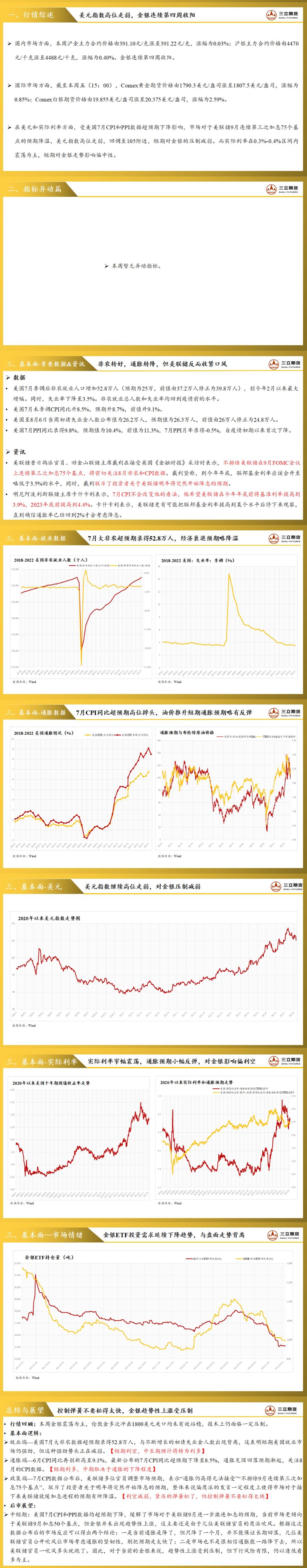 三立期货贵金属周报:控制弹簧不要松得太快,金银趋势性上涨受压制 2022-08-12 17:39 控制弹簧不要松得太快,金银趋势性上涨受压制三立期货公司授权文本由“专注期货开户交易及专业行情分析资讯网站”:【一期货 www.1qh.cn】转发