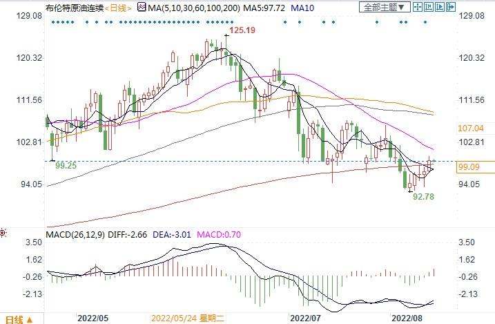 周四布油价格上涨,当日上涨2.38美元(2.44%),报99.78美元,试图夺回每桶100美元以上的位置——这个国际原油基准在整个夏天的大部分时间里都保持着这一位置。