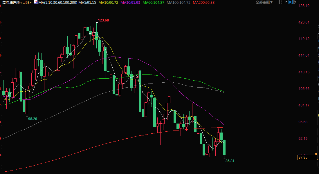 商品收盘方面,布伦特原油期货结算价下跌3.1%,报每桶95.10美元,美国原油期货结算价下跌2.9%,报每桶89.41美元;美国期金下跌近1%,结算价报1798.10美元。