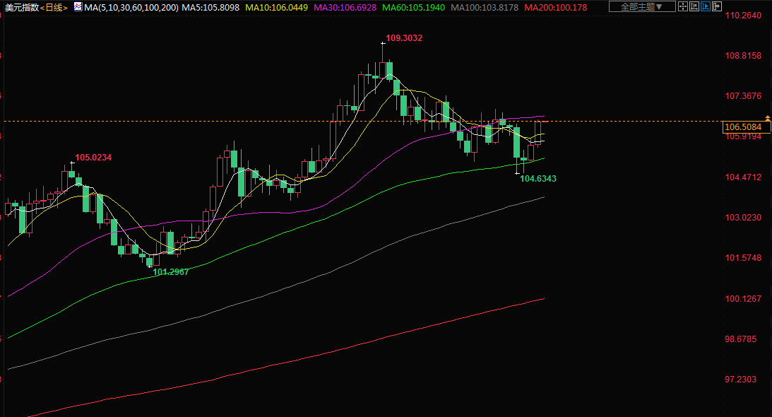 北京时间周二(8月16日)亚市早盘,美元指数交投于106.50附近,;周一美元延续涨势,上涨近1%,美联储官员一直保持着鹰派的基调,且亚洲大国经济数据,加剧全球经济衰退的担忧,提振避险情绪;金价回落超1%,触及一周最低;油价大跌超4%,需求担忧加之伊朗将就伊核协议的“最终”文本草案作出回应,市场保持谨慎。