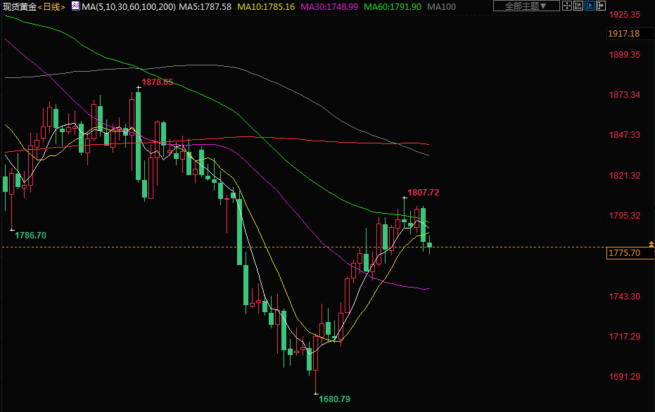 City Index的高级市场分析师Matt Simpson表示:黄金未能吸引避险资金,跌破1783美元支撑很可能触发下方止损单。另外,上周五温和地试图收于1800美元以上,这也是一个线索,显示金价上攻高点并不顺利。”